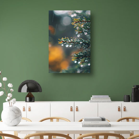Regendruppels op Dennennaalden in Zachte Focus acrylglas