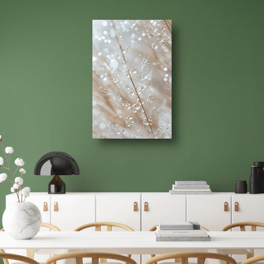 Glinsterende dauwdruppels op grashalmen acrylglas