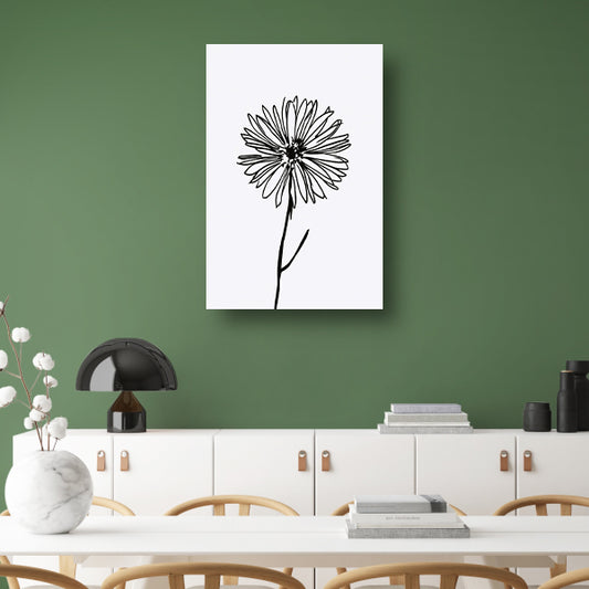 Minimalistische Bloem in Lijntekening Zwart Wit canvas met baklijst