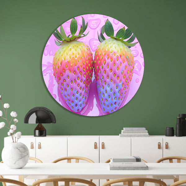Breng een speels en kleurrijk element in je woning met deze abstracte aardbeien op roze achtergrond muurcirkel. Perfect voor elke kamer, van de slaapkamer tot de keuken. Voeg dit unieke stuk toe aan je interieur en geniet van de levendige uitstraling die het brengt!