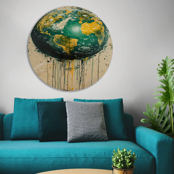 Abstract Aarde met Levendige Verfspatten aluminium muurcirkel
