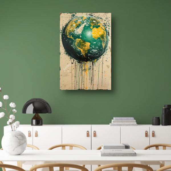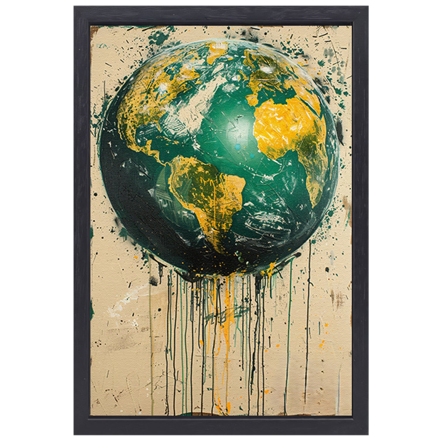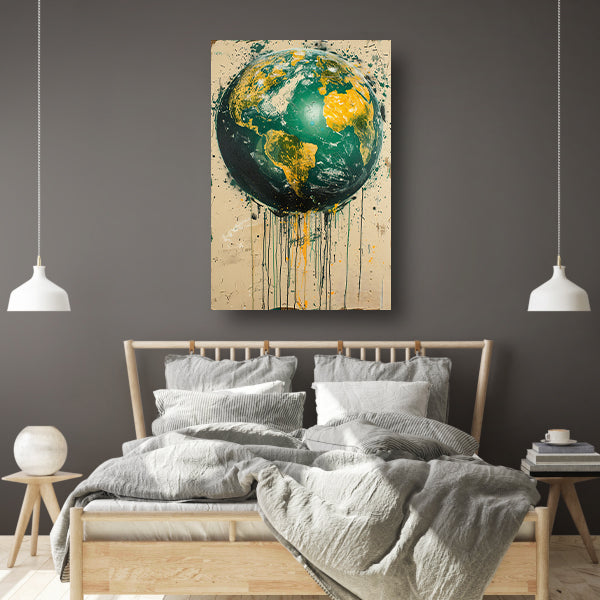 Abstract Aarde met Levendige Verfspatten canvas met baklijst