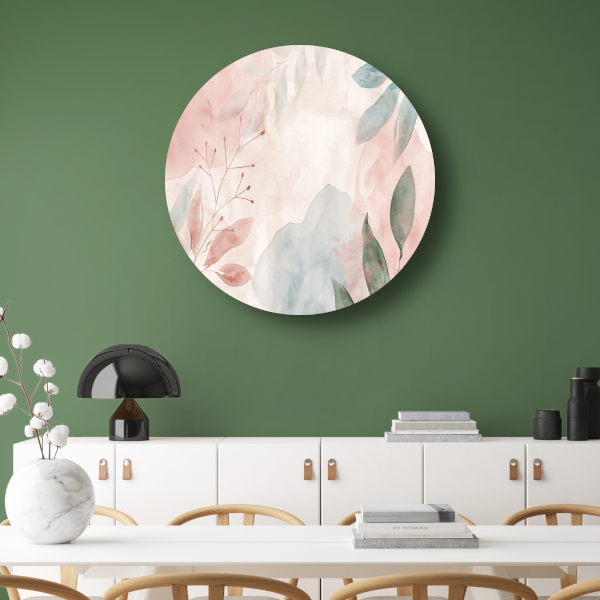 Of je nu op zoek bent naar een eyecatcher voor je woonkamer, slaapkamer of kantoor, deze Abstract Aquarel Ontwerp met Bladeren en Bloemen aluminium muurcirkel zal zeker de aandacht trekken en een vleugje natuurlijke schoonheid toevoegen aan je interieur. Bestel vandaag nog en geniet van de prachtige uitstraling van dit unieke kunstwerk in jouw huis.