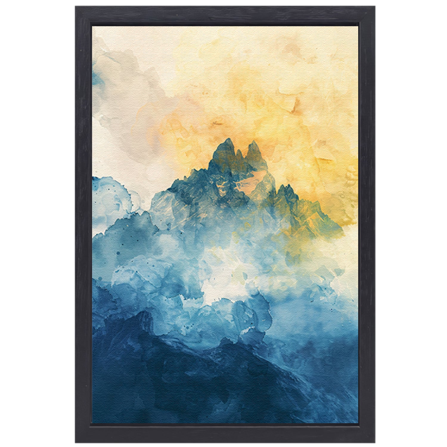 Abstract aquarel schilderij van bergen canvas met baklijst