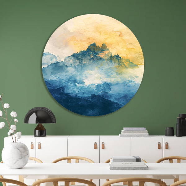 Kies voor kwaliteit en stijl en haal dit abstracte aquarel schilderij van bergen op forex muurcirkel in huis. Een tijdloos kunstwerk dat je keer op keer zal blijven bewonderen.