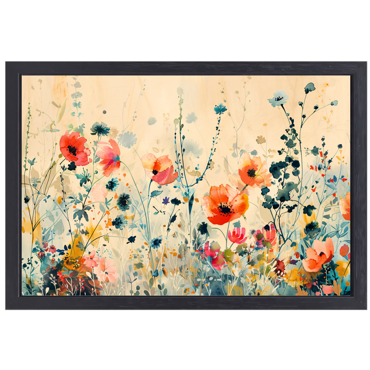 Abstract aquarel schilderij van kleurrijke wilde bloemen canvas met baklijst