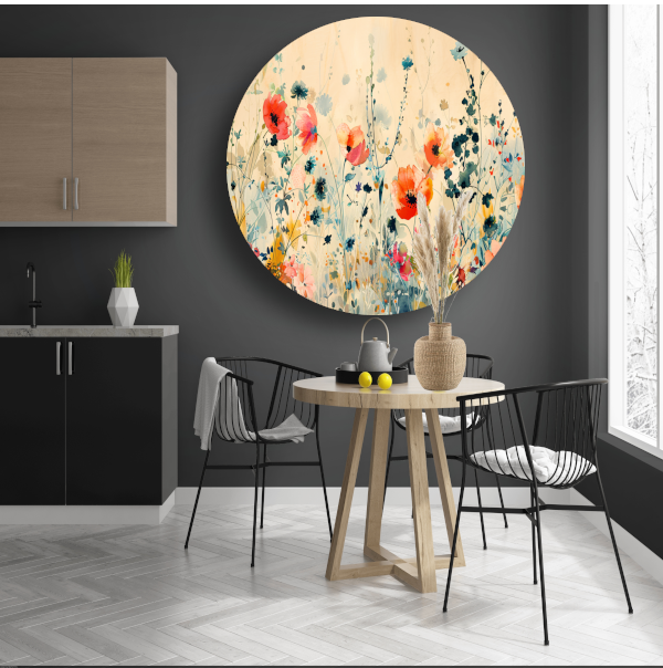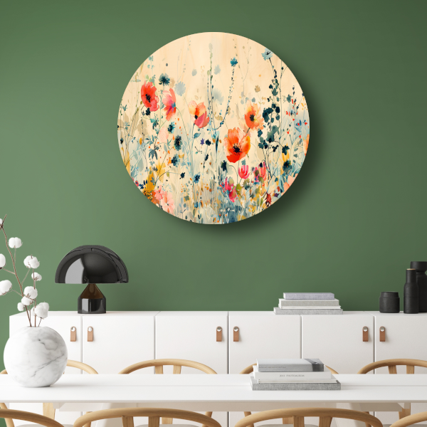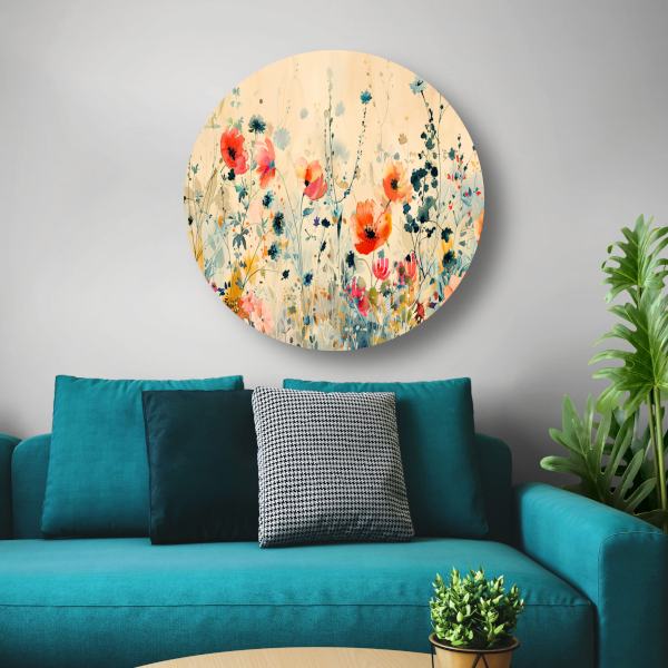 Abstract aquarel schilderij van kleurrijke wilde bloemen forex muurcirkel