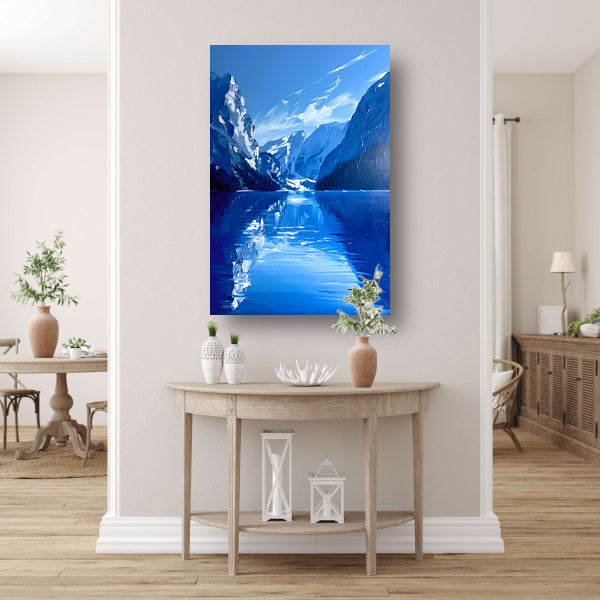 Abstract berglandschap in blauwe tinten canvas met baklijst