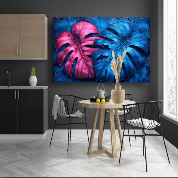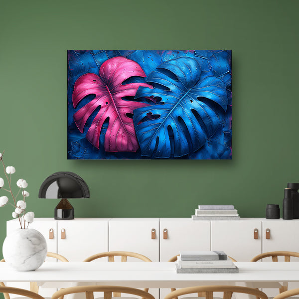 Abstract bladeren in roze en blauw poster
