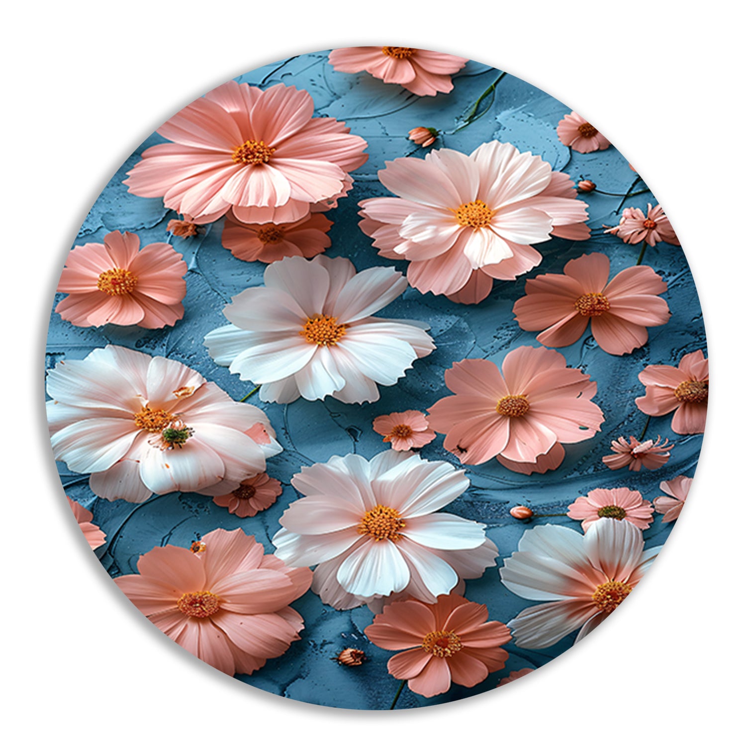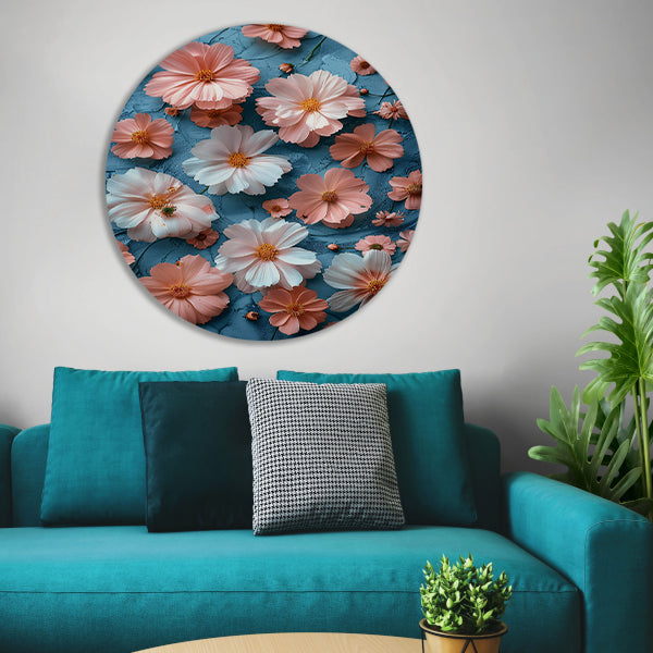 Abstract Bloemen in Blauw aluminium muurcirkel
