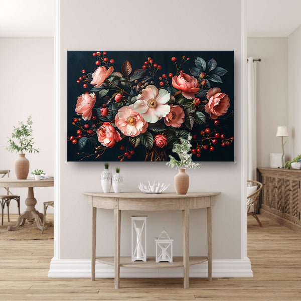Abstract Bloemen in Roze Tinten canvas met baklijst