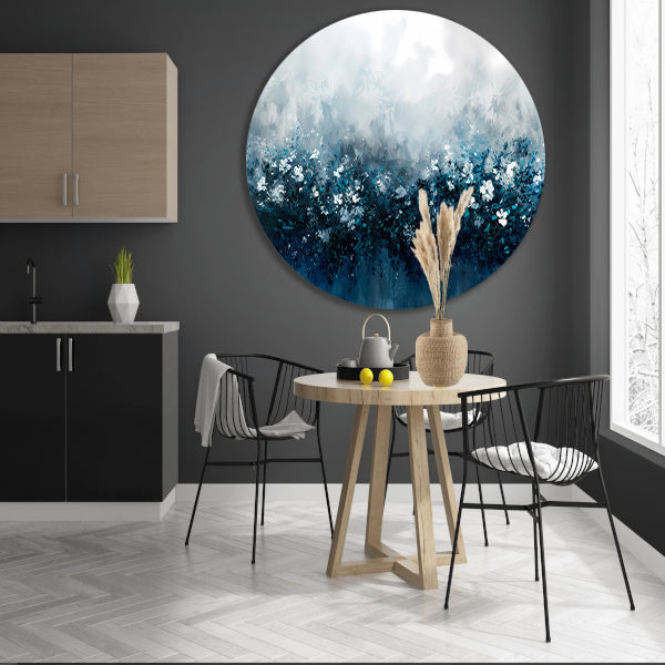 Abstract bloemenveld in blauwe tinten forex muurcirkel