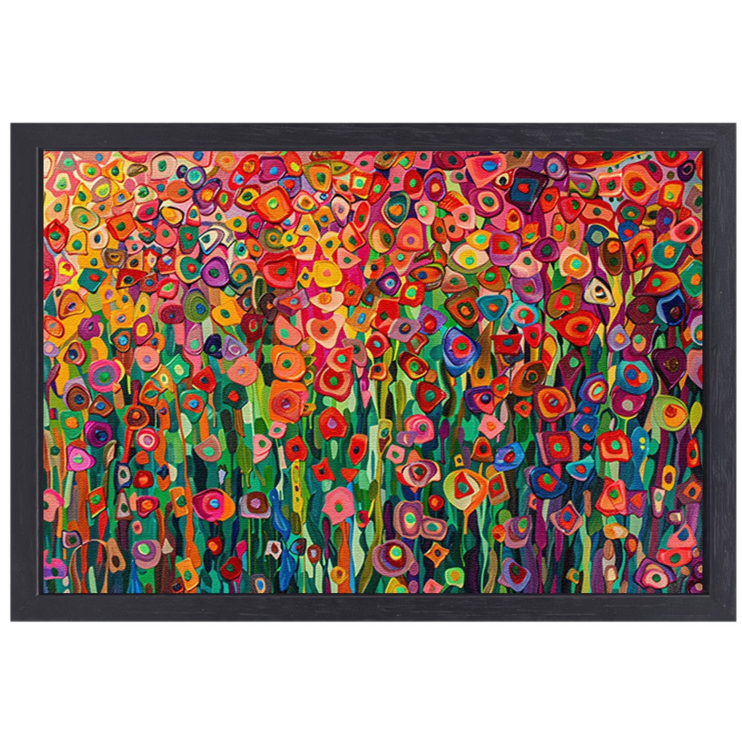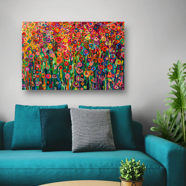 Abstract bloemenveld met felle kleuren canvas met baklijst