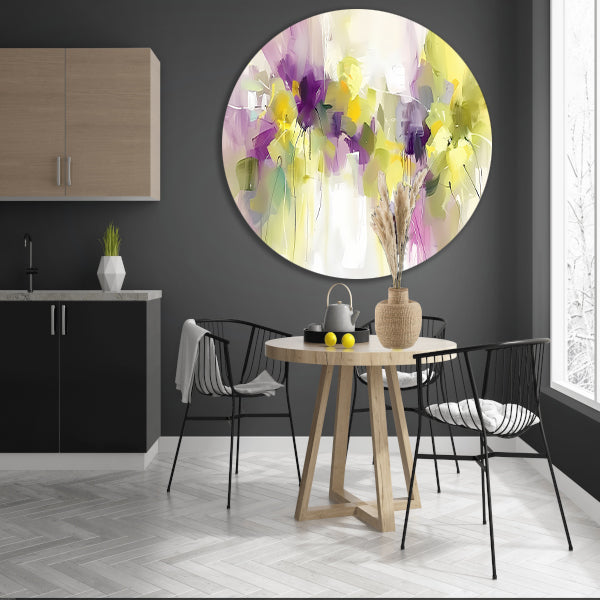 Abstract bloemenveld schilderij met levendige kleuren forex muurcirkel