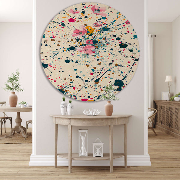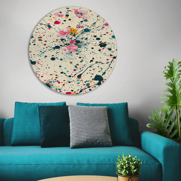 Abstract bloemenzee met Kleurrijk verfspatten forex muurcirkel