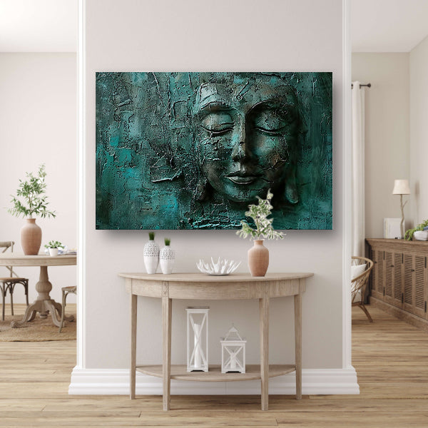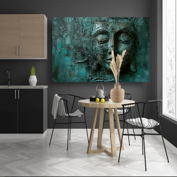Abstract boeddha schilderij met rijke textuur acrylglas