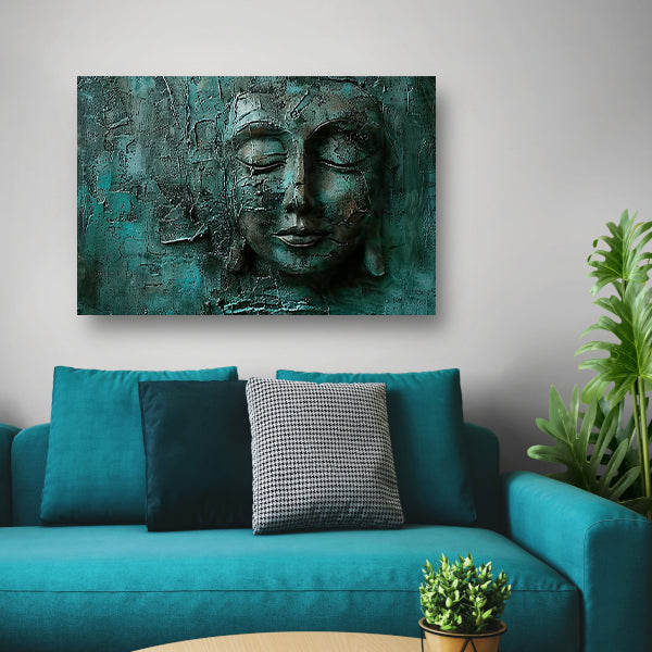 Abstract boeddha schilderij met rijke textuur canvas met baklijst
