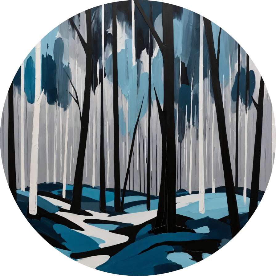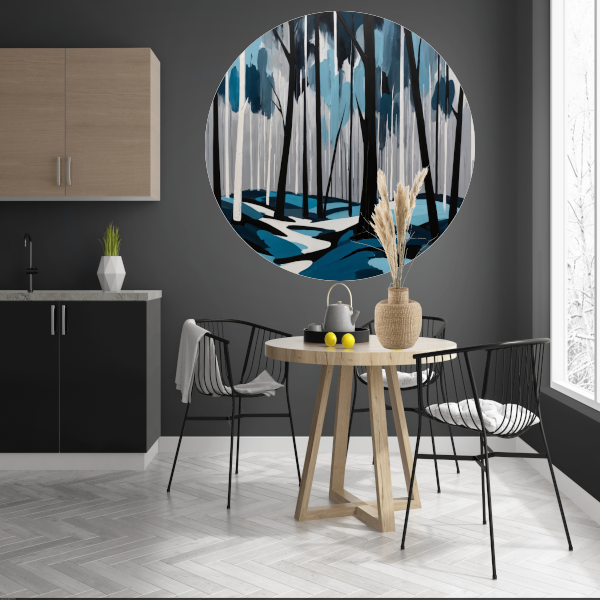 Abstract Boslandschap in Blauw en Zwart aluminium muurcirkel