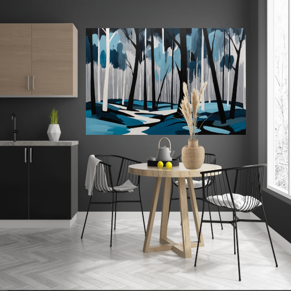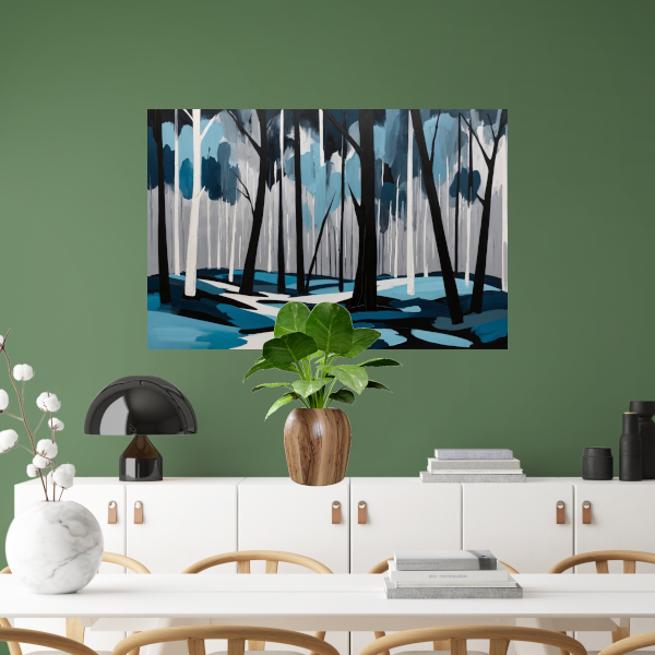 Abstract Boslandschap in Blauw en Zwart canvas met baklijst