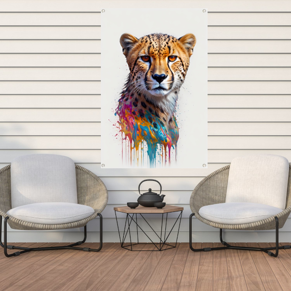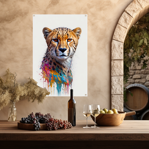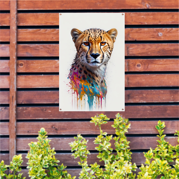Onze tuinposters zijn UV- en waterbestendig, waardoor ze bestand zijn tegen zon en regen en hun kleuren langdurig mooi blijven. Alle tuinposters van De Muurdecoratie zijn voorzien van ringen in de hoeken, zodat je ze eenvoudig kunt ophangen. Let op: onze tuinposters worden niet met ophangsysteem geleverd.