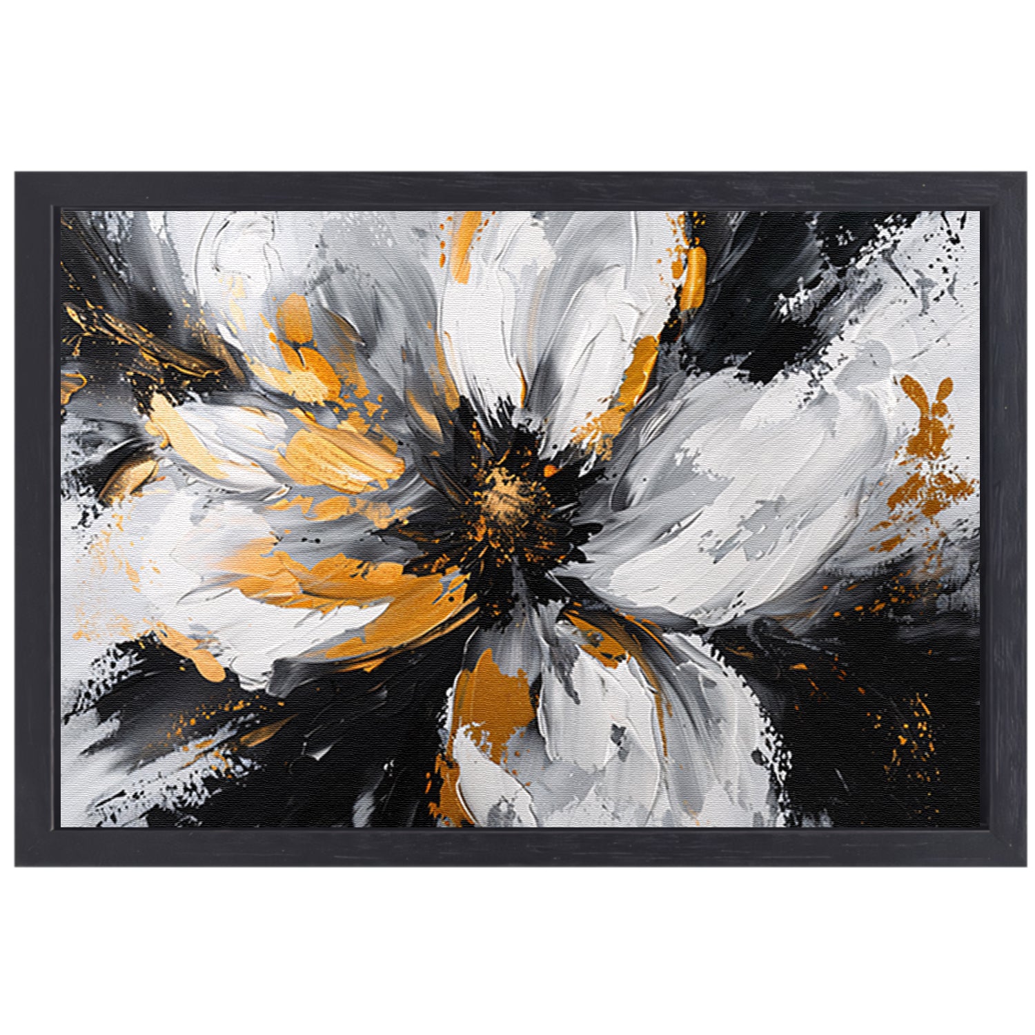 Abstract chrysant schilderij met gouden accenten canvas met baklijst
