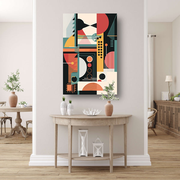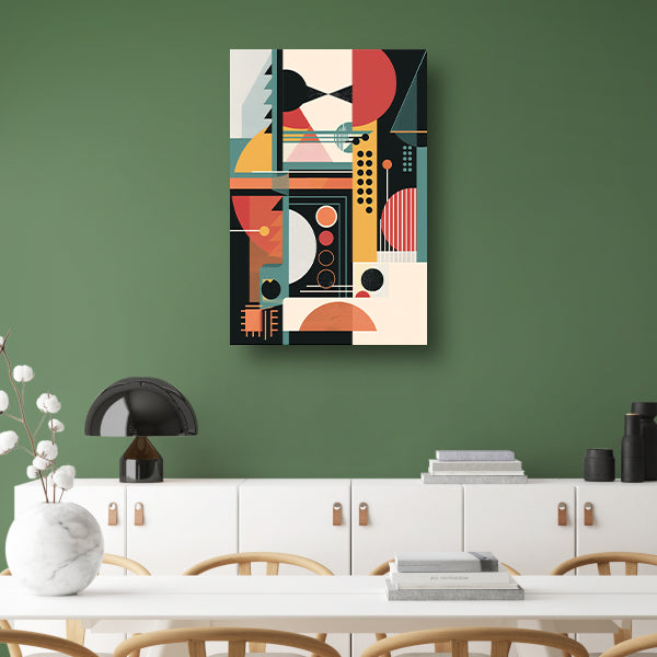 Abstract compositie met primaire kleuren canvas met baklijst