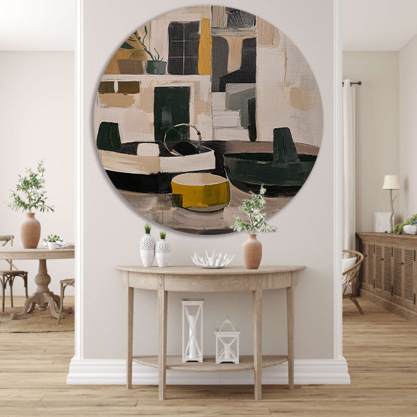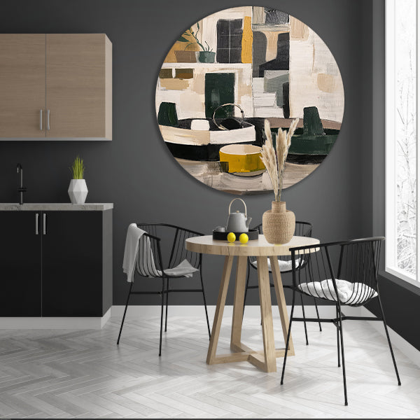 Deze wanddecoratie is verkrijgbaar in allerlei maten, zodat je de perfecte afmeting kunt kiezen voor jouw ruimte. Of je nu op zoek bent naar een eyecatcher voor de woonkamer, slaapkamer of kantoor, deze abstracte compositie zal zeker de aandacht trekken en een moderne touch toevoegen aan elke ruimte.