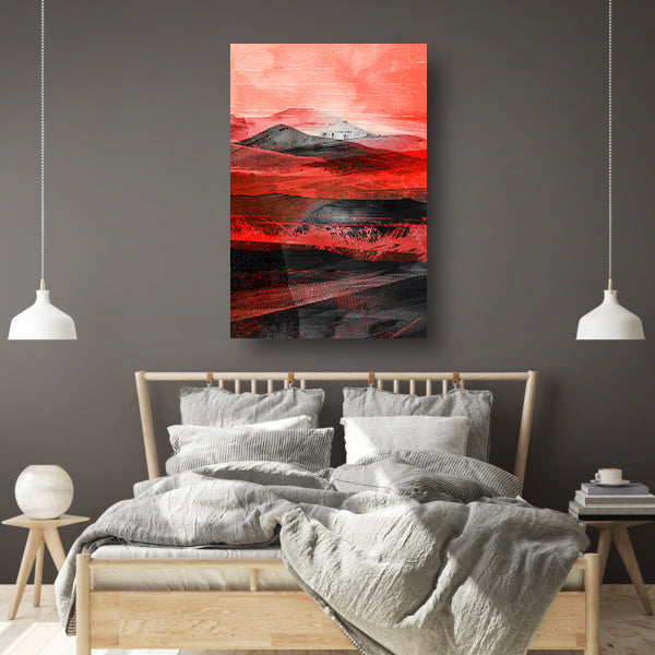 Abstract dynamisch woestijnlandschap met bergen canvas met baklijst