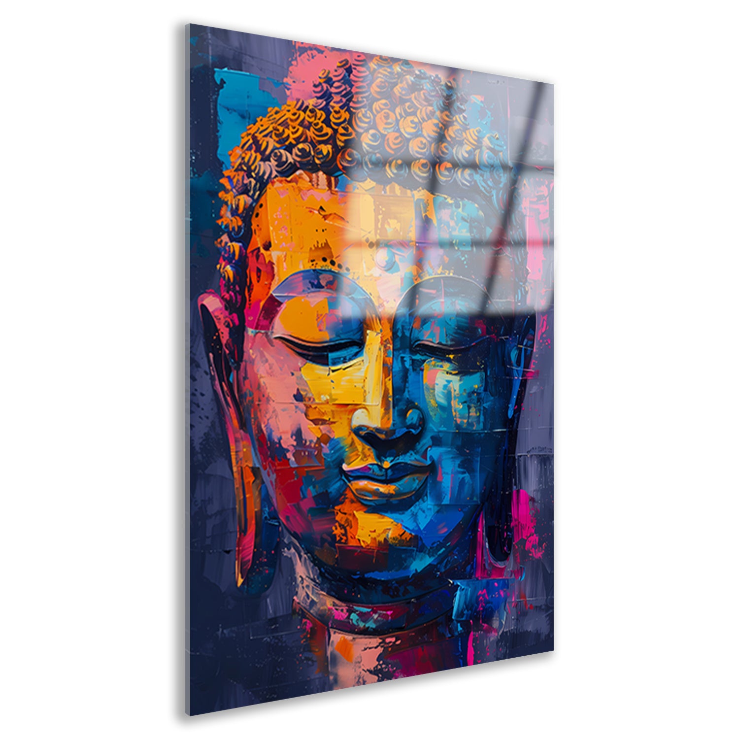 Abstract en kleurrijk Boeddha hoofd schilderij acrylglas