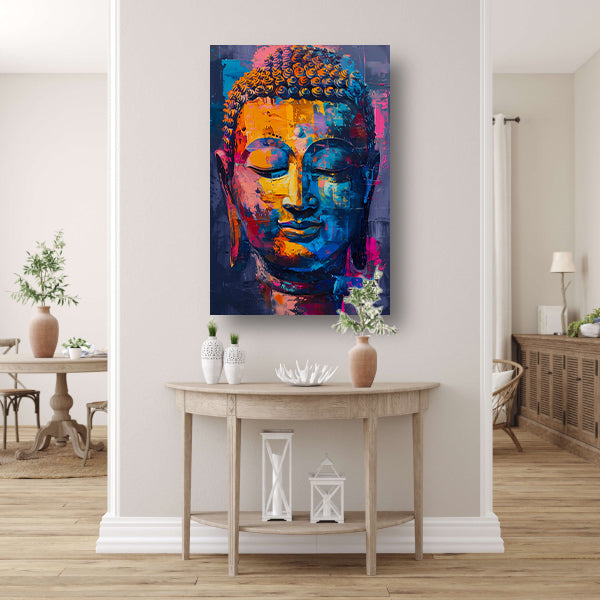 Abstract en kleurrijk Boeddha hoofd schilderij poster