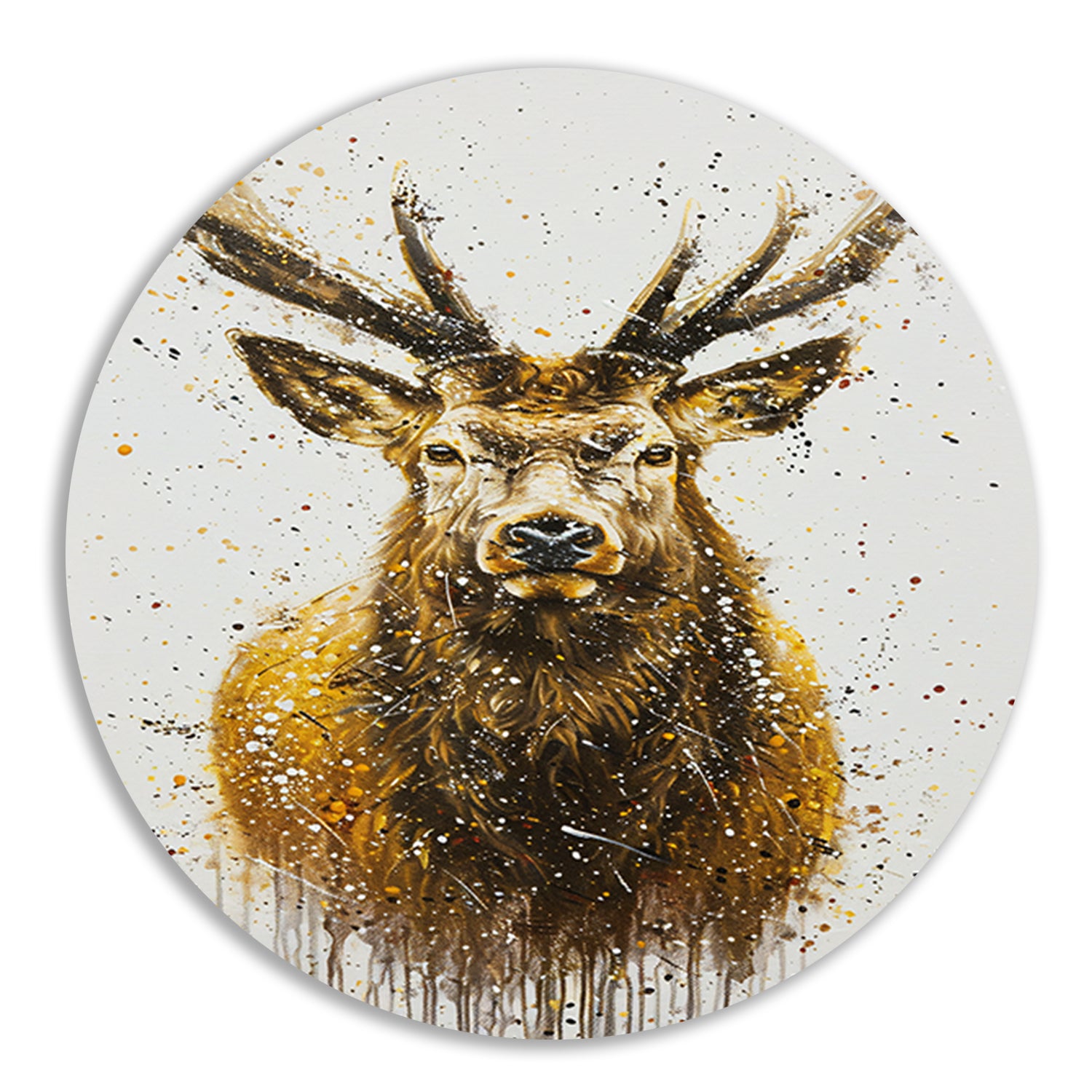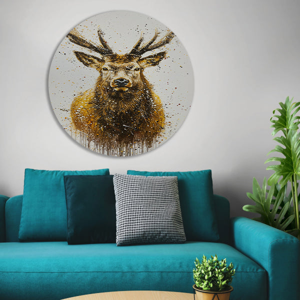Haal de schoonheid van de natuur in huis met dit prachtige abstract expressieve schilderij van een hert op een aluminium muurcirkel. Perfect voor liefhebbers van kunst en natuur!