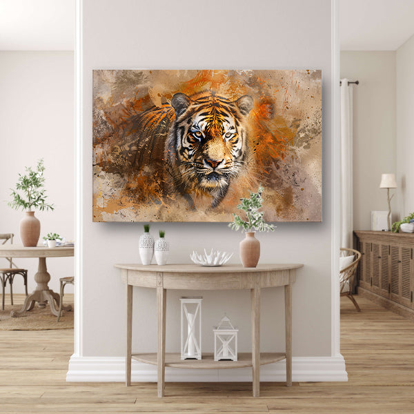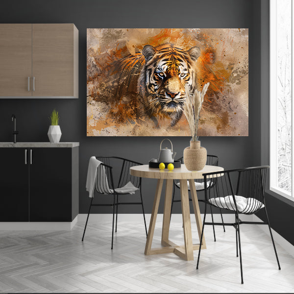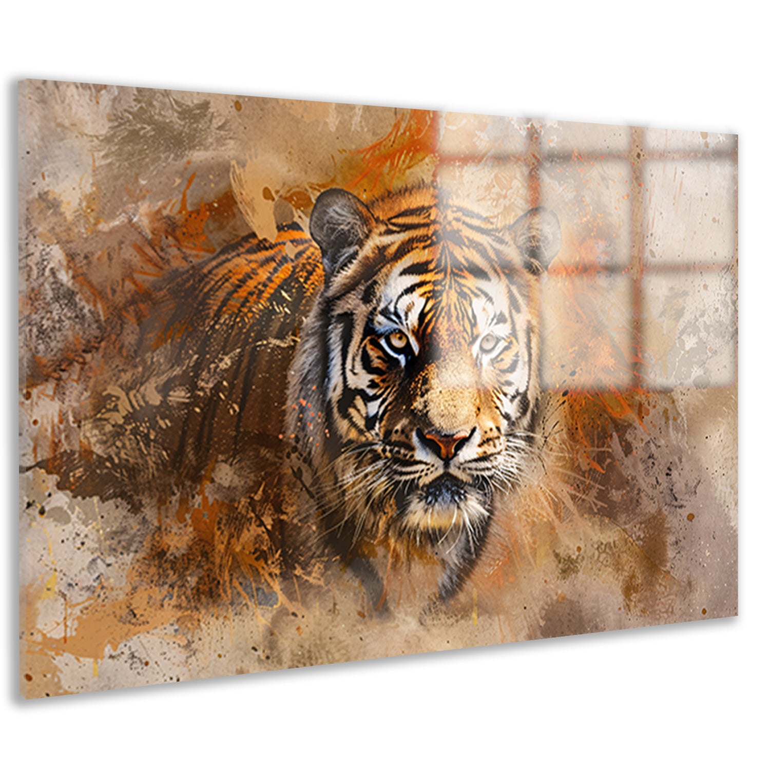 Abstract expressief tijgerportret in oranje tinten acrylglas