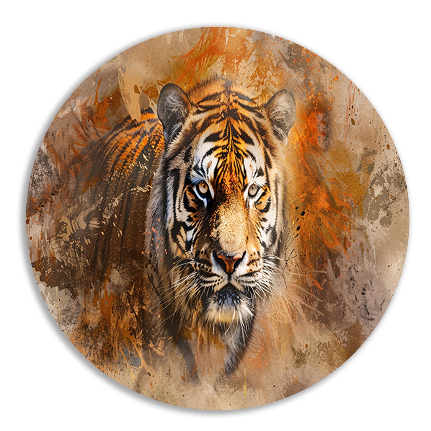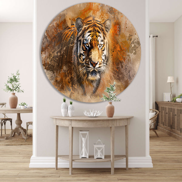 Abstract expressief tijgerportret in oranje tinten forex muurcirkel