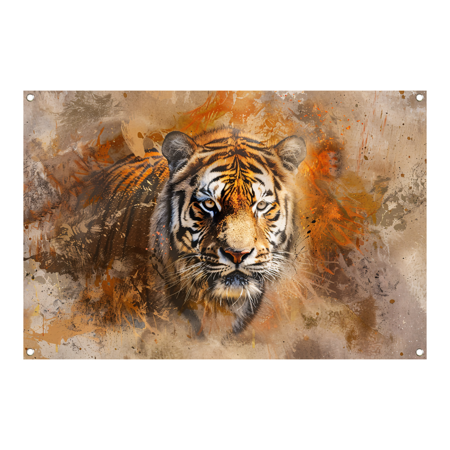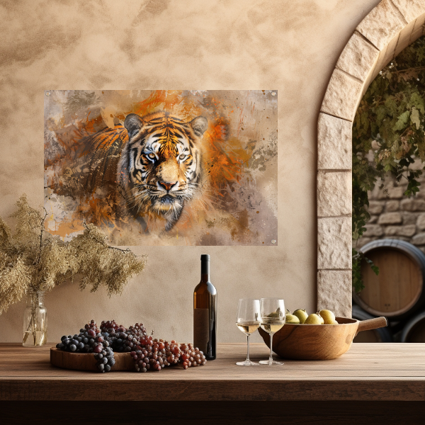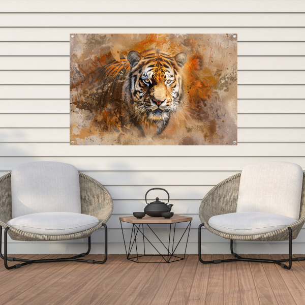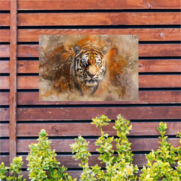 Abstract expressief tijgerportret in oranje tinten tuinposter