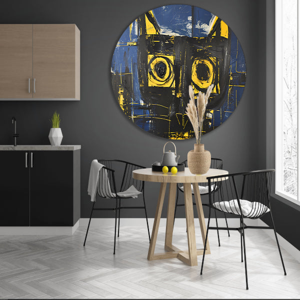 De muurcirkel wordt geleverd met een gratis ophangplaat, waardoor het ophangen van het kunstwerk een fluitje van een cent is. Het moderne ontwerp en de expressieve penseelstreken maken dit schilderij tot een echte eyecatcher in uw interieur.