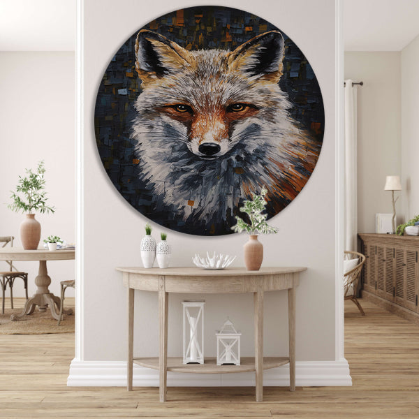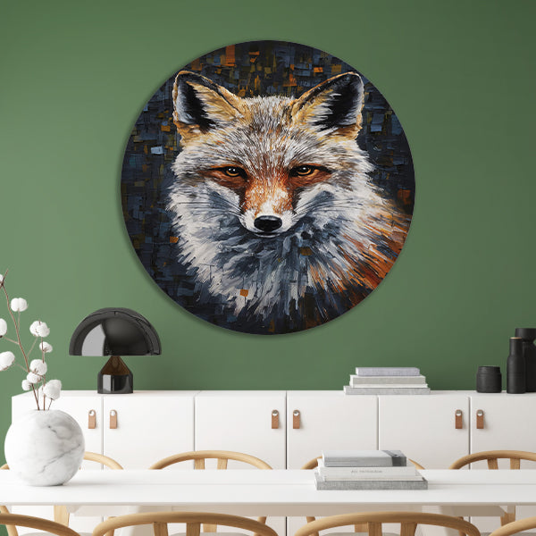 Abstract Expressionistische Vos in Levendige Kleuren aluminium muurcirkel