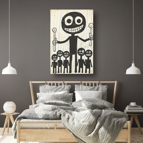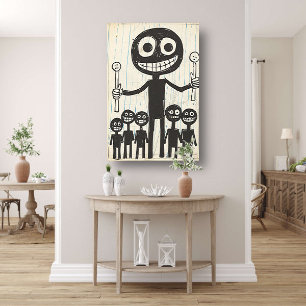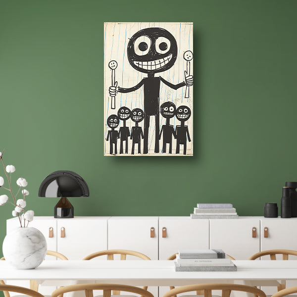 Abstract Figuren met Lollipops in Zwart-Wit canvas met baklijst