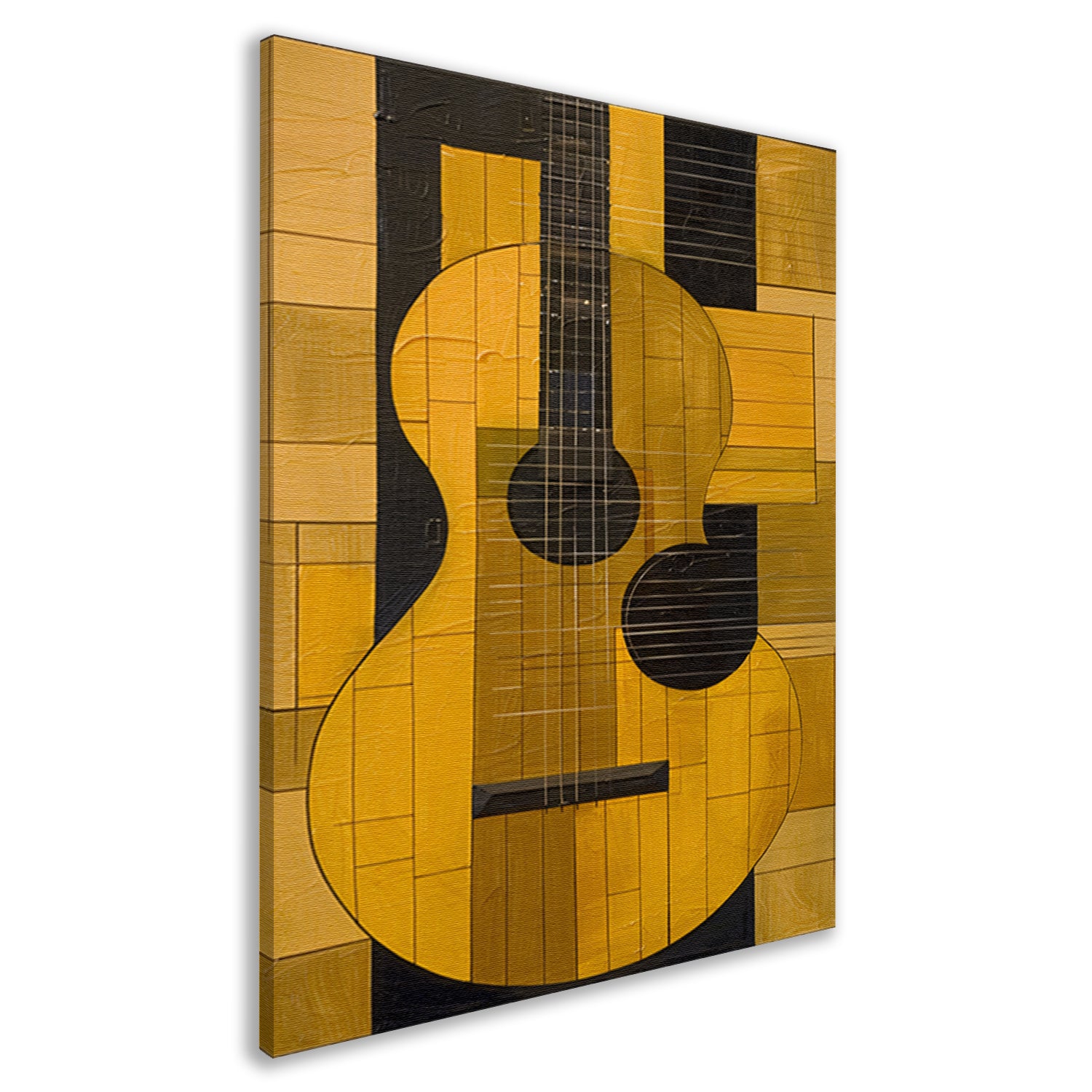 Abstract gele gitaar met zwarte lijnen canvas