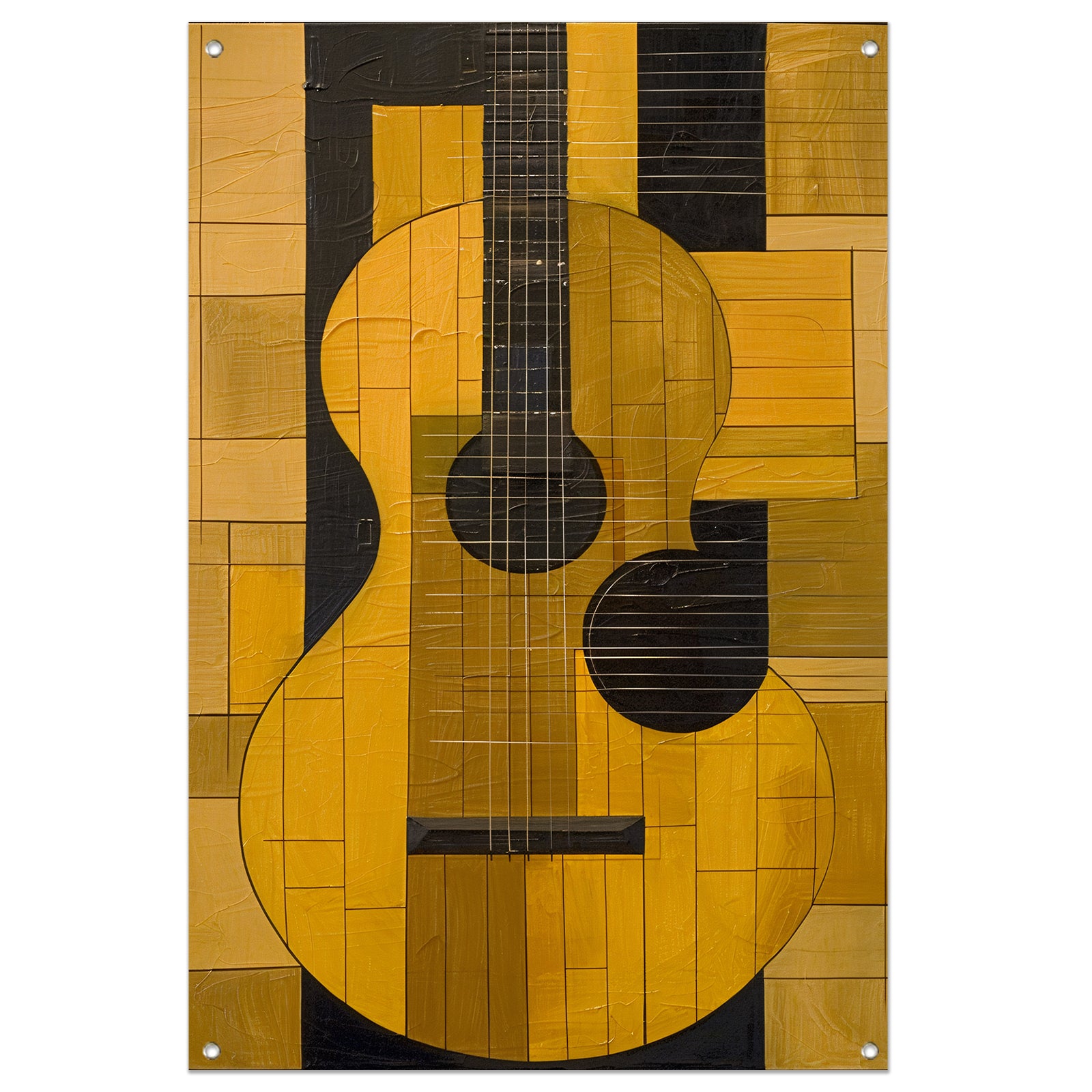 Abstract gele gitaar met zwarte lijnen tuinposter