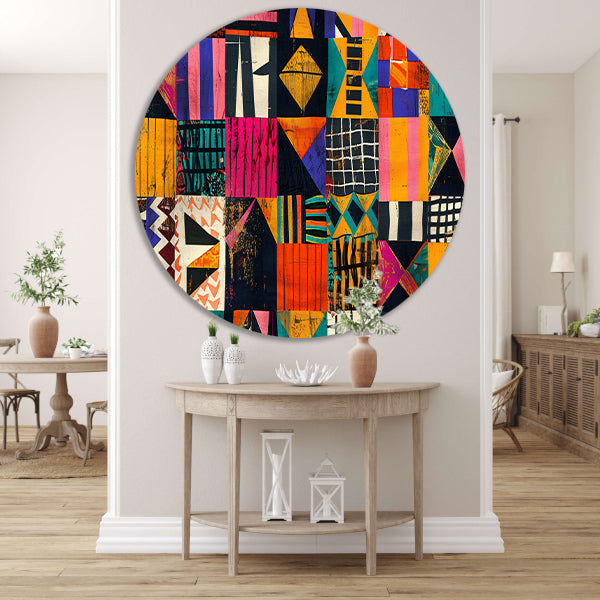 Abstract geometrisch kunstwerk in levendige kleuren forex muurcirkel