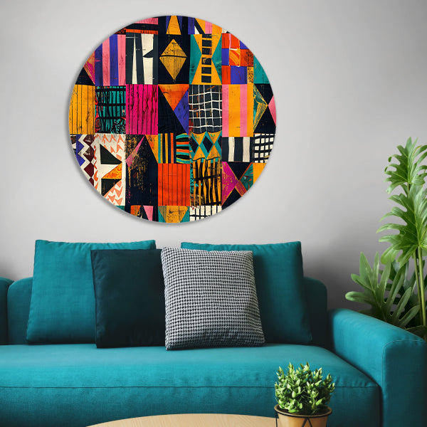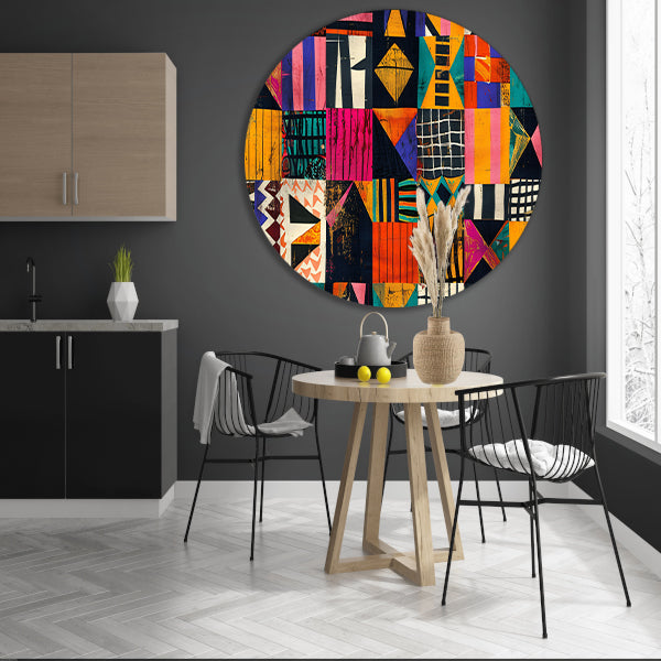 Met dit abstracte geometrische kunstwerk haal je een uniek stukje moderne kunst in huis, wat zeker gespreksstof zal opleveren bij je gasten. Bestel vandaag nog jouw forex muurcirkel en geef jouw interieur een kleurrijke boost!