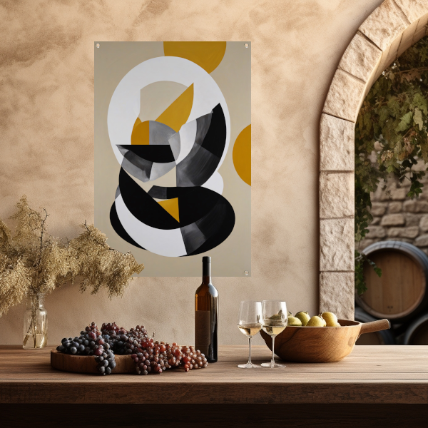 Abstract Geometrisch Spel in Zwart, Wit, Geel tuinposter