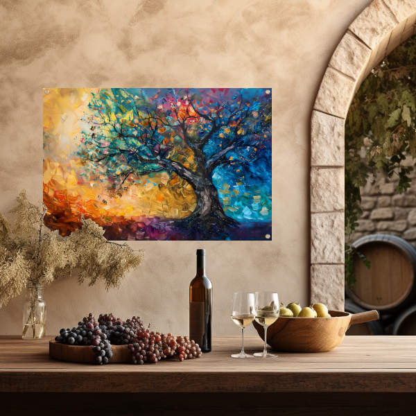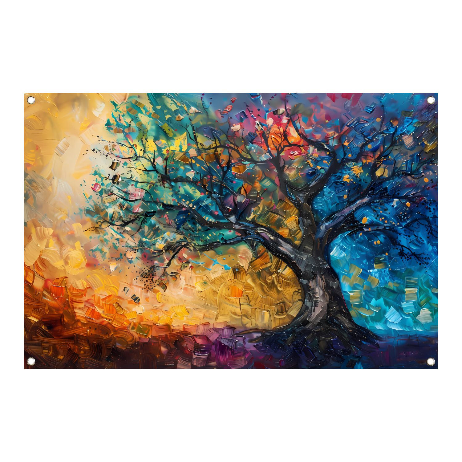 Abstract geschilderde kleurrijke boom in olieverf tuinposter