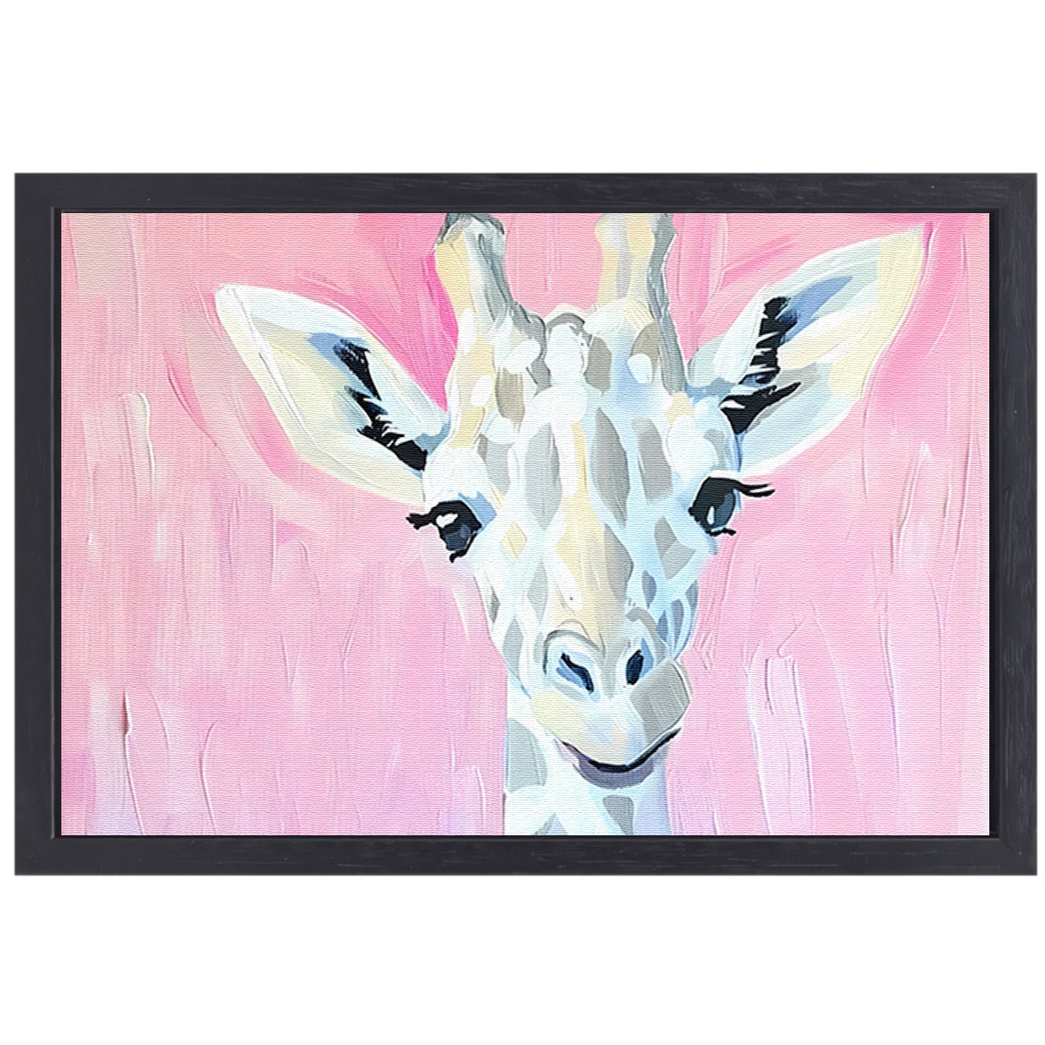 Abstract giraffe schilderij met roze tinten canvas met baklijst