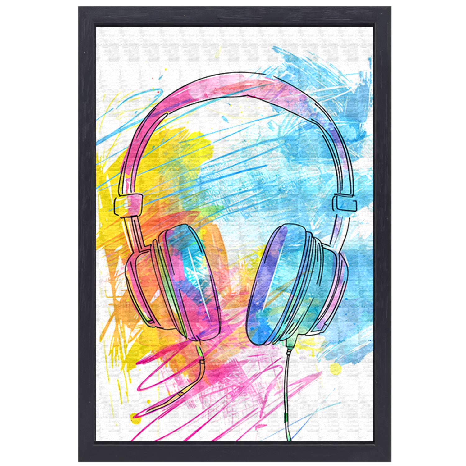 Abstract Graffiti Koptelefoon in Kleur canvas met baklijst