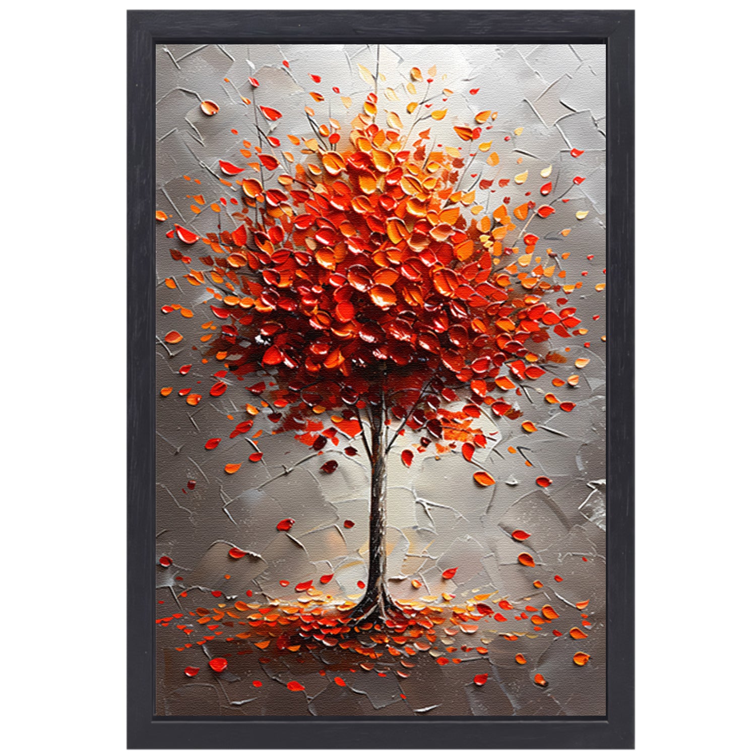 Abstract herfstboom in vurige kleuren canvas met baklijst