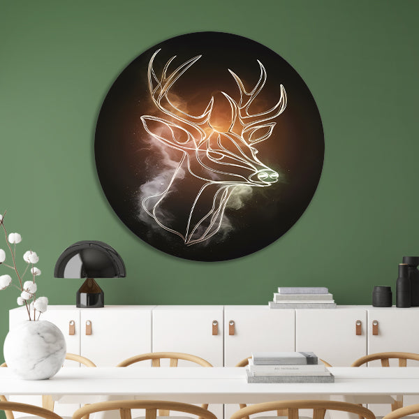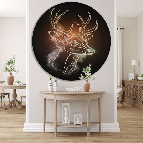 Abstract Hert in Kosmische Gouden Lijnen aluminium muurcirkel