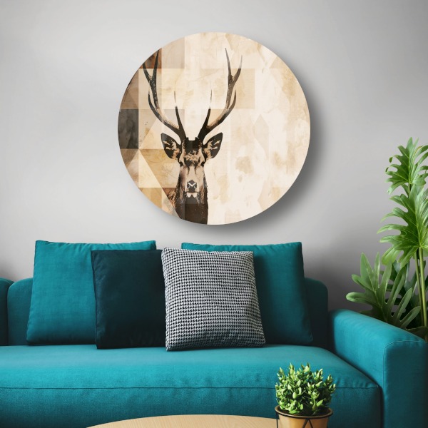 Abstract Hert in Sepia Geometrische Kunst aluminium muurcirkel