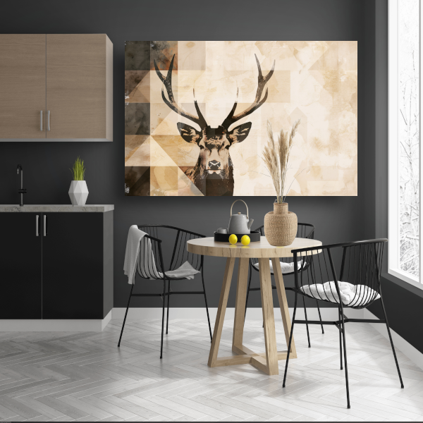 Abstract Hert in Sepia Geometrische Kunst canvas met baklijst