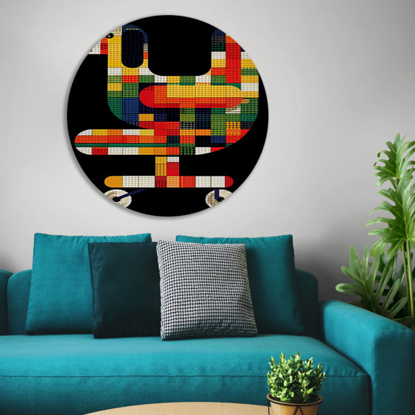 Abstract hond in Kleurrijk bureaustoel aluminium muurcirkel